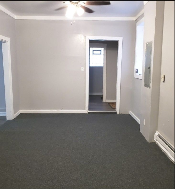 Layout & Interior Living With three bedrooms and one full bathroom, the floorplan is ideal for families, roommates, or a tenant seeking dedicated work-from-home space. The oversized square footage provides distinct living zones—ideal for separate dining and living areas, a home office, or hobby rooms. Carpeted floors add a warm, quiet feel to the sleeping quarters and common areas.